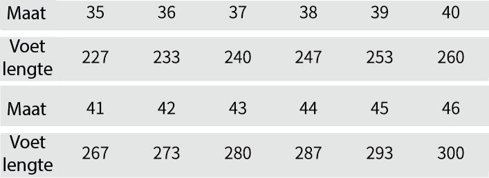 | Maat | Voet lengte |